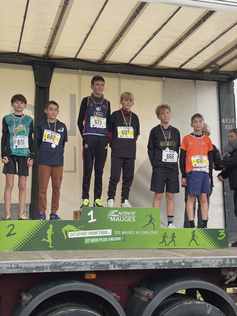 4 athlètes (Elena, Léon, Guido, Aventin) des catégories U14 et U16 ont participé le 23 décembre 2025 au regroupement départemental de cross-country qui avait lieu à Saint-Macaire-en-Mauges pour préparer au mieux les championnats départementaux. Cette journée a permis entre autres de reconnaître le parcours et de partager des séances techniques et de foncier avec les meilleurs crossmen et crosswomen du département.