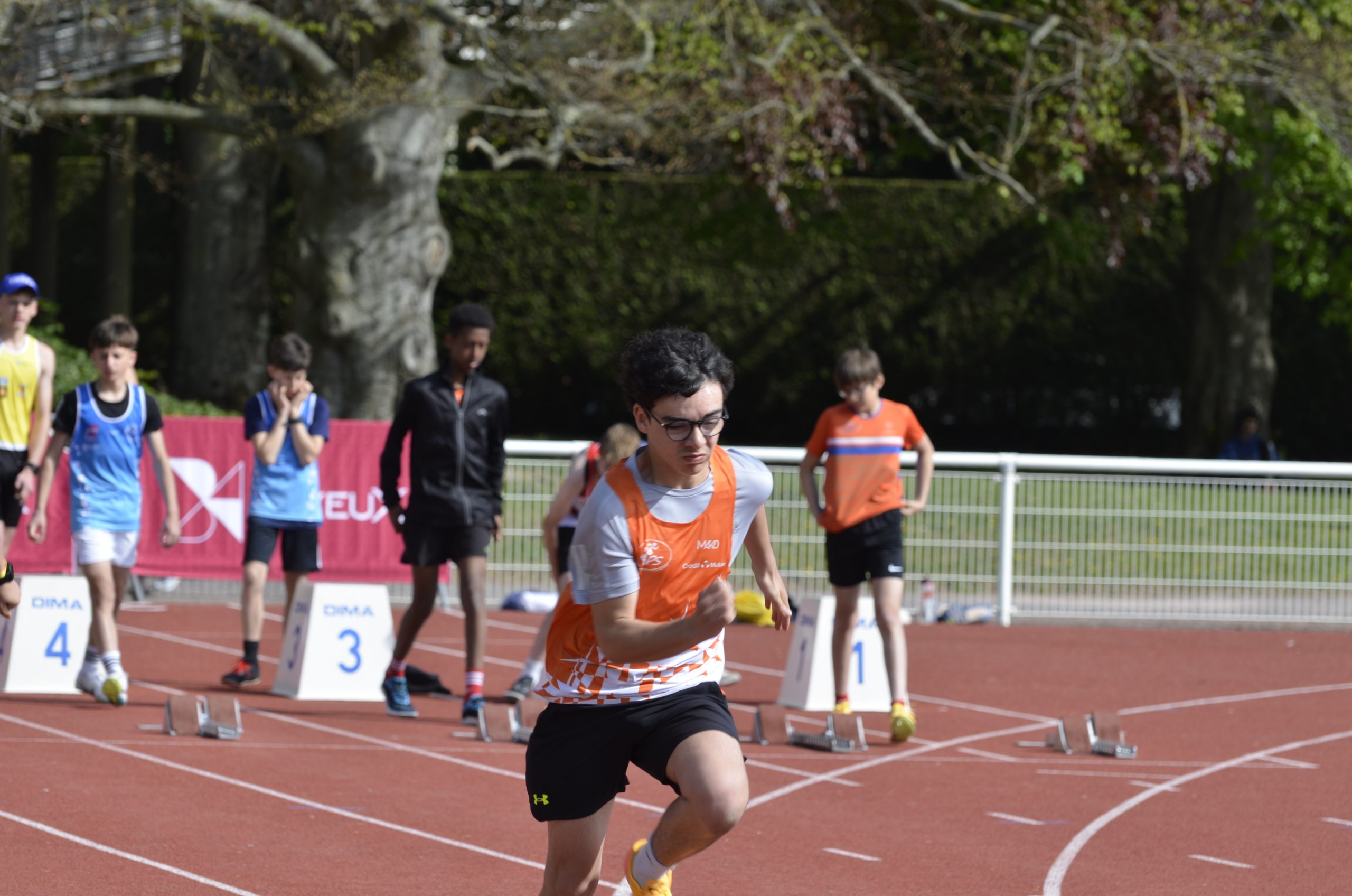 Chez les garçons, Louis Lambert enchaîne avec un 100m en 12’’96, un lancer de javelot à 18m12 et un 400m en 65’’23 💨.